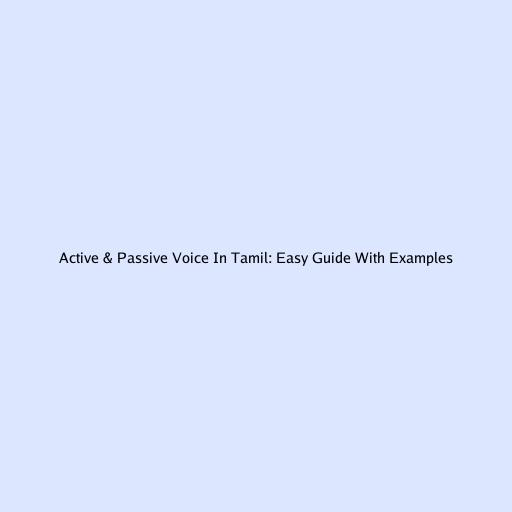 Hey guys! Today, we’re diving into the world of active and passive voice in Tamil . Understanding these grammatical concepts can really level up your language skills, making your sentences clearer and more impactful. So, let’s get started and break it down in a way that’s super easy to grasp!