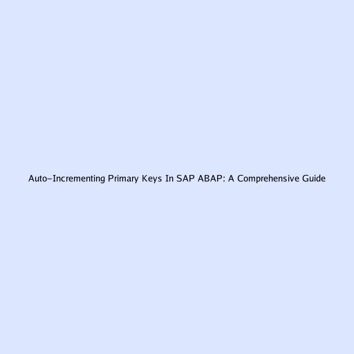 Auto-Incrementing Primary Keys In SAP ABAP: A Comprehensive Guide