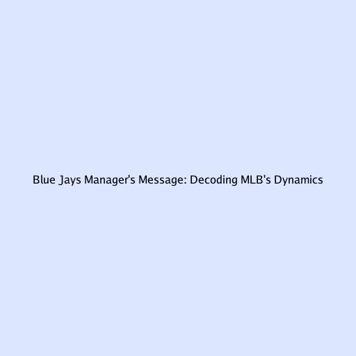 Blue Jays Manager's Message: Decoding MLB's Dynamics
