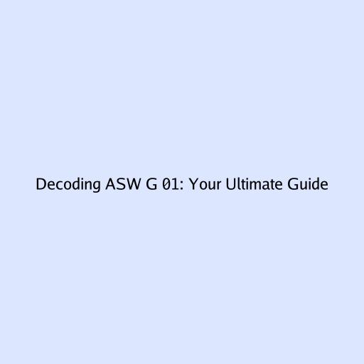 Decoding ASW G 01: Your Ultimate Guide