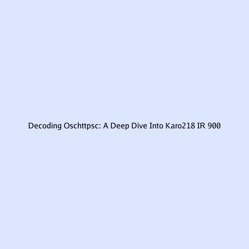 Decoding Oschttpsc: A Deep Dive Into Karo218 IR 900