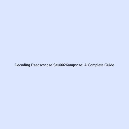 Decoding Pseoscscgse Seu0026ampscse: A Complete Guide