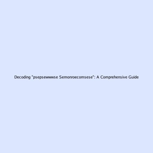 Decoding "psepsewwwse Semonroecomsese": A Comprehensive Guide