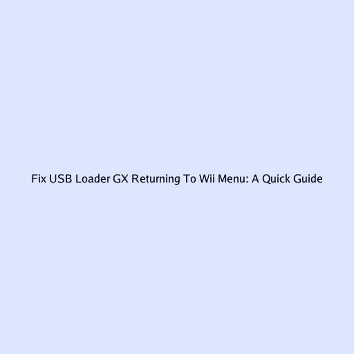 Fix USB Loader GX Returning to Wii Menu: A Quick Guide