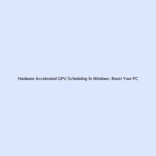 Hardware Accelerated GPU Scheduling in Windows: Boost Your PC