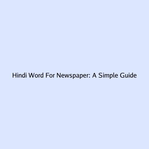 Hindi Word For Newspaper: A Simple Guide