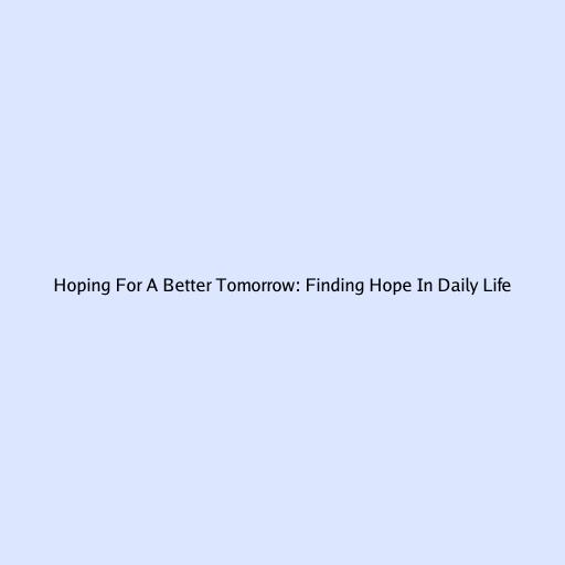 Hoping For A Better Tomorrow: Finding Hope In Daily Life