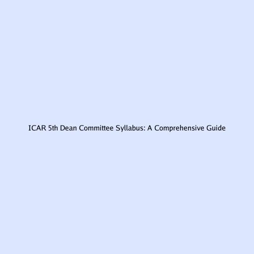 ICAR 5th Dean Committee Syllabus: A Comprehensive Guide
