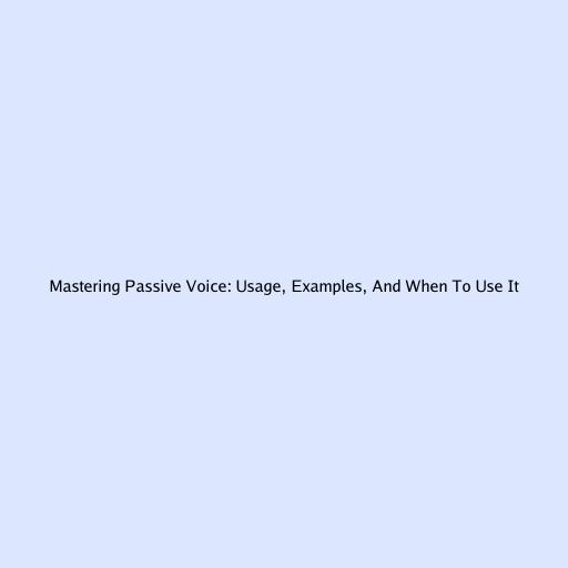 Mastering Passive Voice: Usage, Examples, And When To Use It