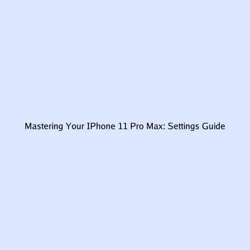 Mastering Your IPhone 11 Pro Max: Settings Guide