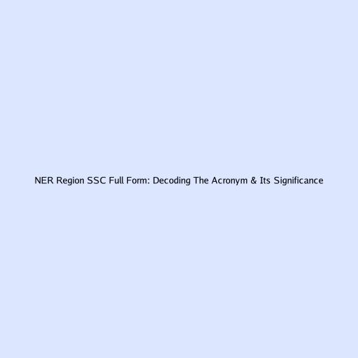 NER Region SSC Full Form: Unveiling the Acronym