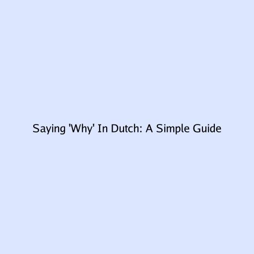 Saying ‘Why’ in Dutch: A Simple Guide