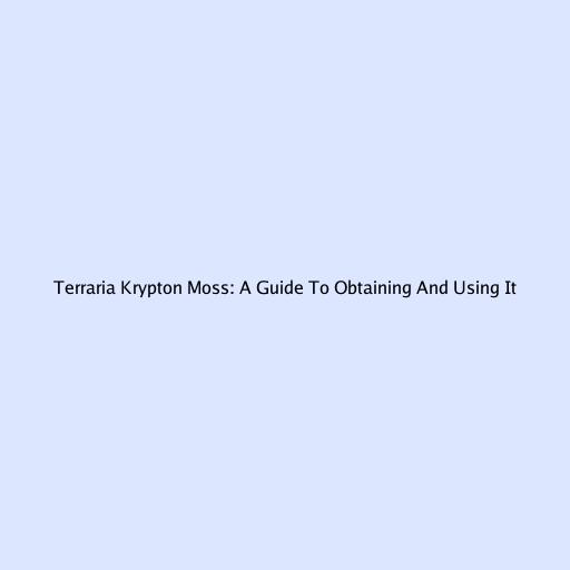 Terraria Krypton Moss: A Guide To Obtaining And Using It