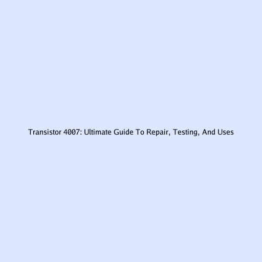 Transistor 4007: Ultimate Guide To Repair, Testing, And Uses