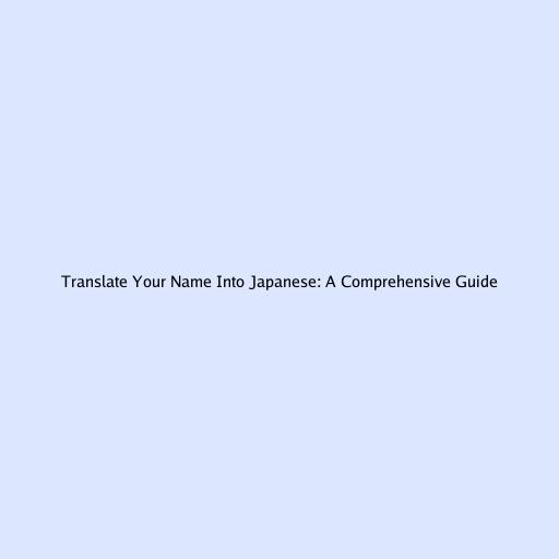 Translate Your Name into Japanese: A Comprehensive Guide