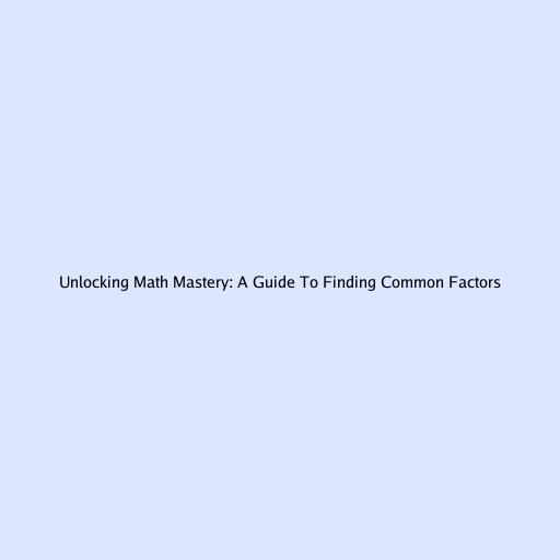Unlocking Math Mastery: A Guide to Finding Common Factors