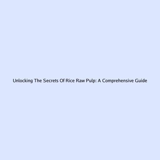 Unlocking the Secrets of Rice Raw Pulp: A Comprehensive Guide
