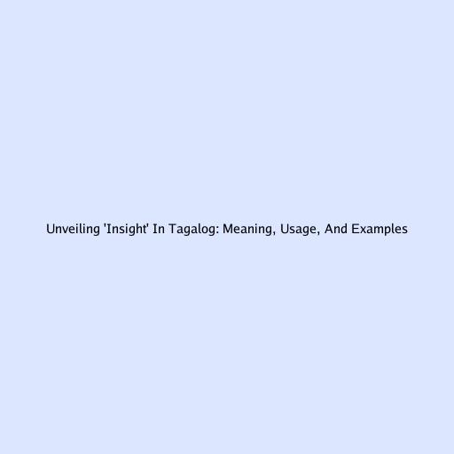 Unveiling ‘Insight’ in Tagalog: Meaning, Usage, and Examples
