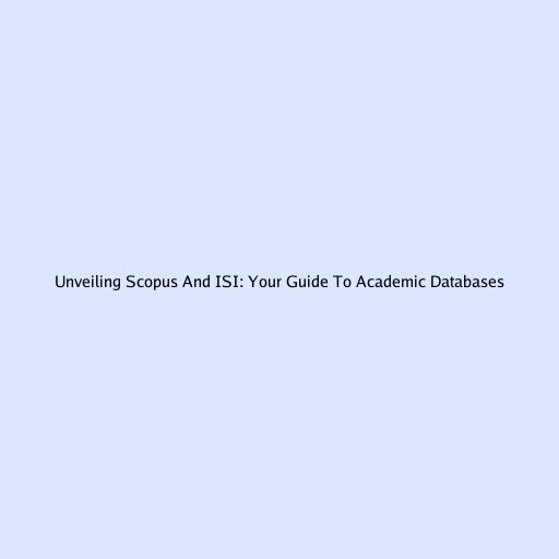 Unveiling Scopus And ISI: Your Guide To Academic Databases