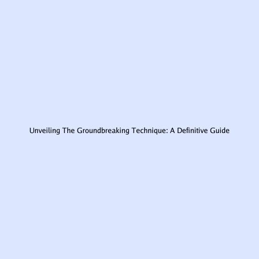 Unveiling the Groundbreaking Technique: A Definitive Guide